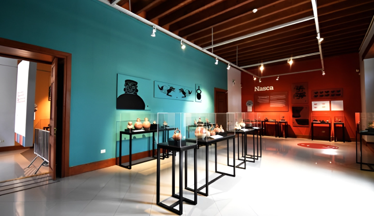 El museo exhibe piezas de cinco culturas prehispánicas de la costa del Perú: Moche, Nasca, Lambayeque, Chimú y Chancay, las cuales reflejan en su rica iconografía distintos aspectos de la vida cotidiana de los antiguos habitantes de la costa peruana.