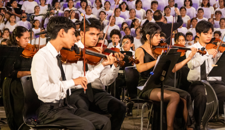 Participan: el Coro general del Programa Música para Crecer de la Municipalidad de Lima, la Orquesta Sinfónica de la iniciativa pedagógica Orquestando y la Orquesta Sinfónica José Bernardo Alzedo.
