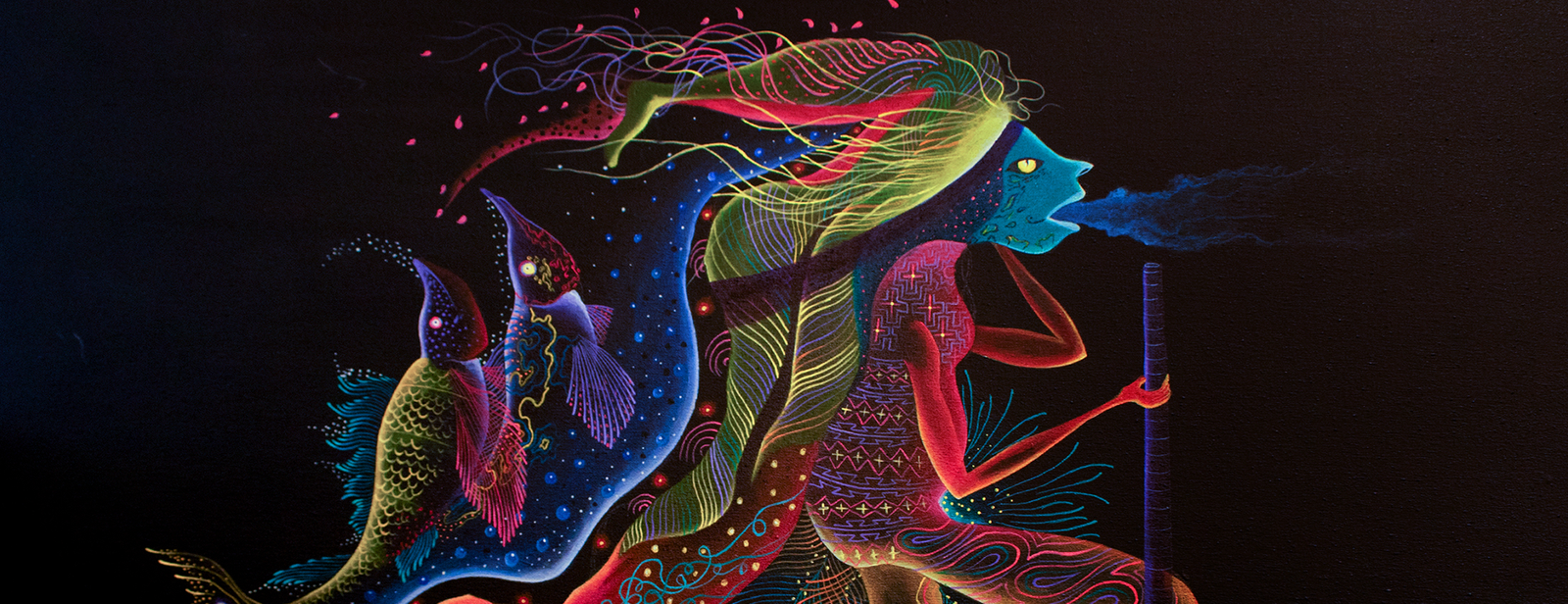 “Seres de Medianoche” es una exposición pictórica inspirada en los mitos, espíritus y seres sobrenaturales de la Amazonía peruana. El