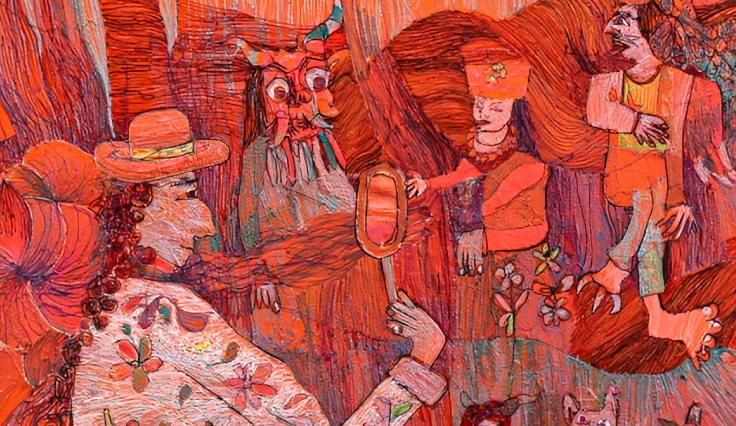 El artista arequipeño Felipe Coaquira está presentando su exposición individual «Hilos. Bordando comunidades», una impecable muestra que evoca el arte tradicional del bordado textil del Colca, su lugar de origen. En la exhibición se encuentran reunidos diversos personajes del mundo simbólico e imaginario y escenas que nos reflejan la tradición en creencias, bailes y fiestas.