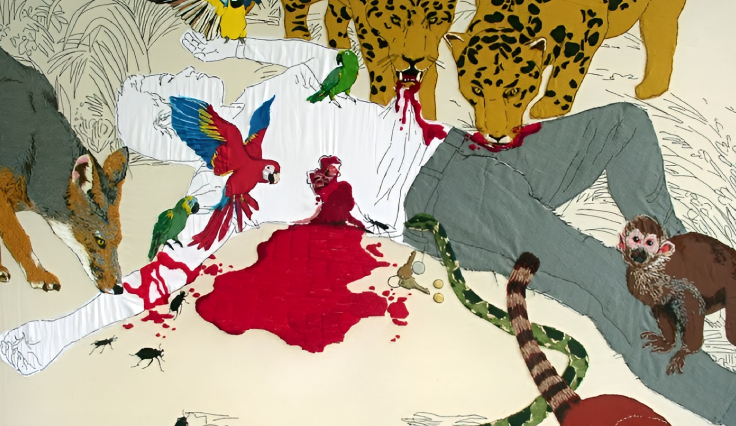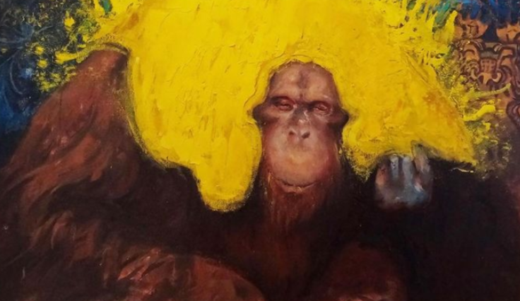 Esta obra fue ganadora del primer lugar del II Concurso Nacional de Pintura del BCRP. De ella señalan, que casi no se puede distinguir la frontera entre el hombre y el animal. Aquí el mono sin ser protagonista es parte de este mundo animal, tal vez salvaje, tal vez a imagen del hombre.