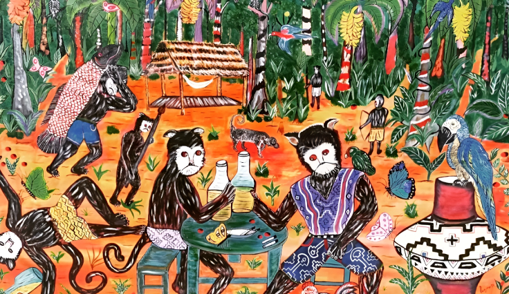 Se puede ver que los pintores peruanos respetan los monos y la naturaleza. Debe ser un ejemplo por la humanidad.