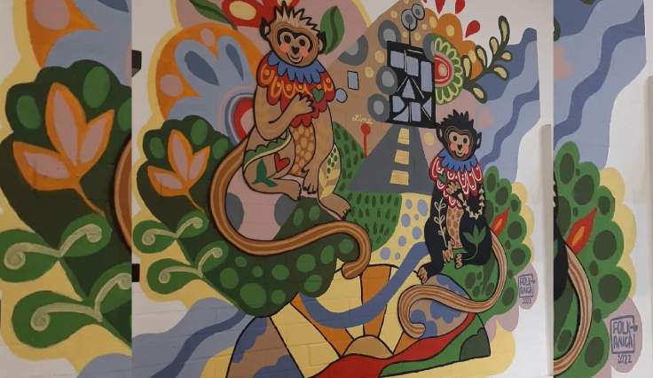 La reconocida ilustradora Folkanica (Flavia Macedo) realizó dos murales para las tiendas Kipling del Centro Comercial Jockey Plaza y el Real Salaverry, inspirados en el Mono Tocón, una especie amazónica en peligro de extinción que es única del Perú. Si bien no es una temática recurrente en su obra, Folkanica se ha encargado de mostrar las bondades del país a través de sus colores. Por su parte, esta cadena de tiendas conocida por tomar el apellido del autor de «El libro de la selva», Rudyard Kipling, asumió como mascota y logo de la marca al mono como símbolo de diversión y aventura.