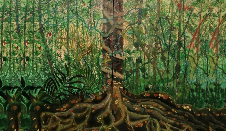 «Unión» es un díptico en gran formato que formó parte de la exposición individual de esta artista titulada «Una mirada diferente». En la exhibición la artista mostró las bondades naturales de Tarapoto, su lugar de origen, y  también alzó la voz por las múltiples explotaciones que existen en la selva. En esta obra, en la inmensidad de un árbol se encuentra un mono contemplando su alimento.