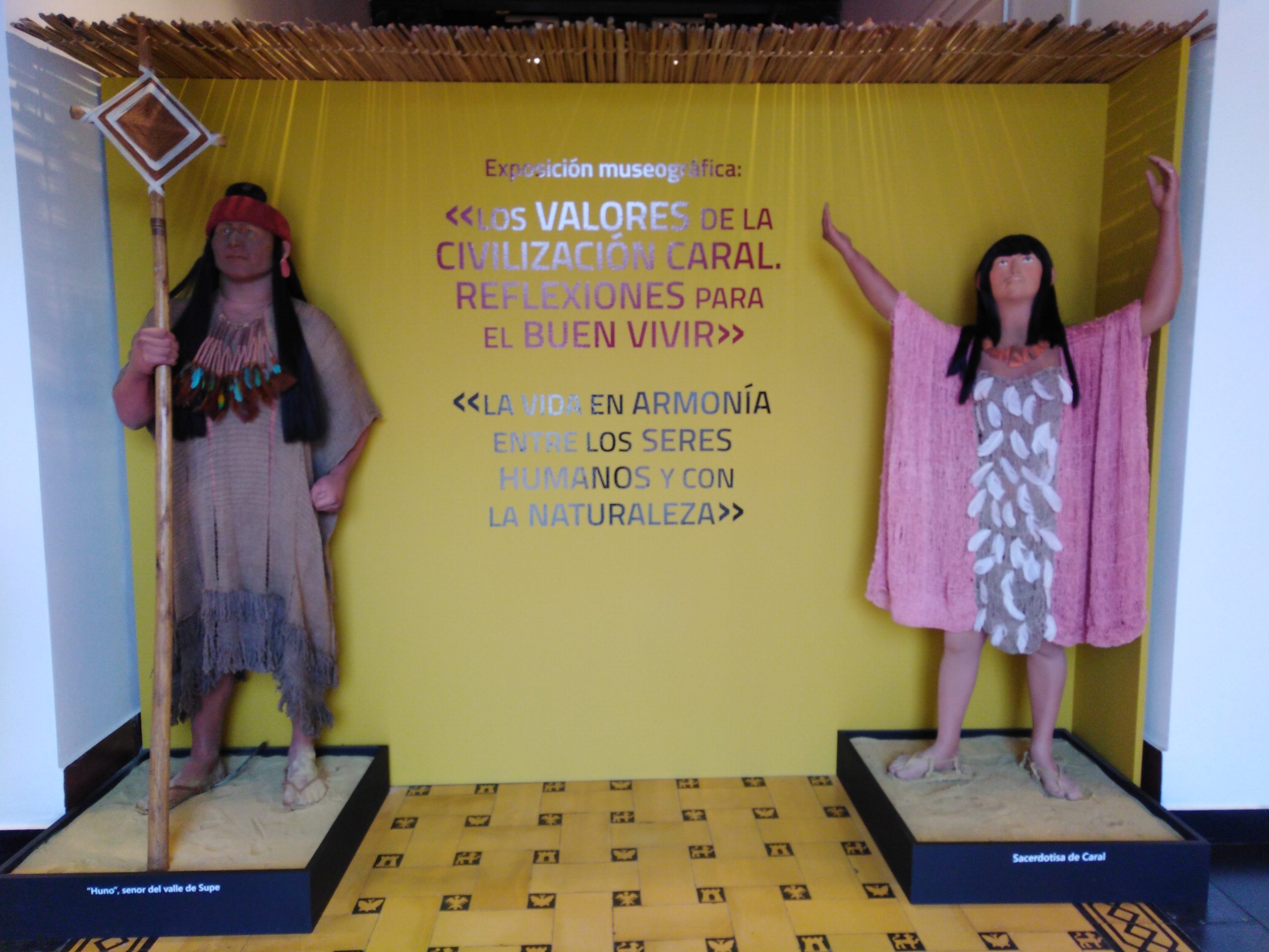 La exposición museográfica «Los Valores de la Civilización Caral. Reflexiones para el «Buen Vivir» forma parte de un programa de difusión que desarrolla la zona arqueológica Caral y es el resultado de 28 años de investigación multidisciplinaria en doce antiguos centros urbanos de la primera civilización de América, forjada en el área norcentral del país, entre el valle de Supe y el valle de Huaura.