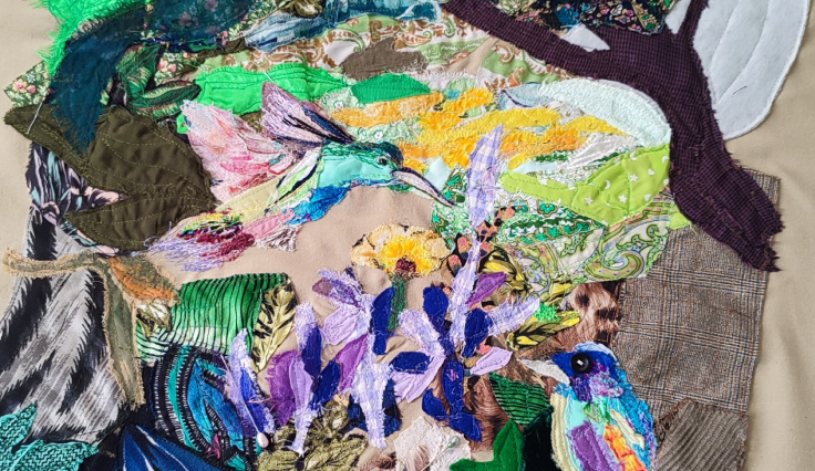 A partir de retales que se yuxtaponen para representar flores silvestres, ríos, pantanos, aves, mar, tierra, cielo, estrellas, día y noche, la artista explora su relación con la naturaleza, entablando así un diálogo crítico sobre el impacto de nuestras decisiones de consumo en el entorno y proponiendo una mirada más sostenible hacia los textiles y la moda.