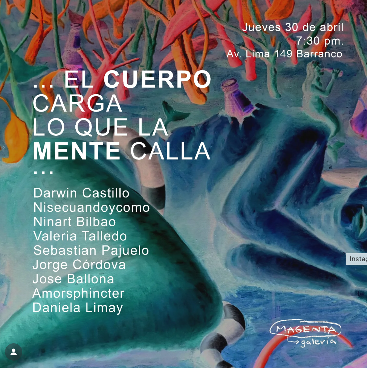 Magenta Galería inaugura “El cuerpo carga lo que la mente calla”, una exposición colectiva que reúne a nueve artistas emergentes de la Universidad Nacional de Bellas Artes del Perú en una propuesta que invita a mirar de cerca la relación entre emociones, cuerpo y salud mental. A través de lenguajes diversos que van desde lo académico y lo onírico hasta lo experimental, la muestra construye un recorrido sensible donde las experiencias personales dialogan con problemáticas contemporáneas, revelando cómo las presiones del entorno pueden inscribirse en lo físico. Más que una exhibición, se plantea como un espacio de reflexión colectiva que permite descubrir nuevas voces del arte local y conectar con inquietudes que atraviesan la vida cotidiana.