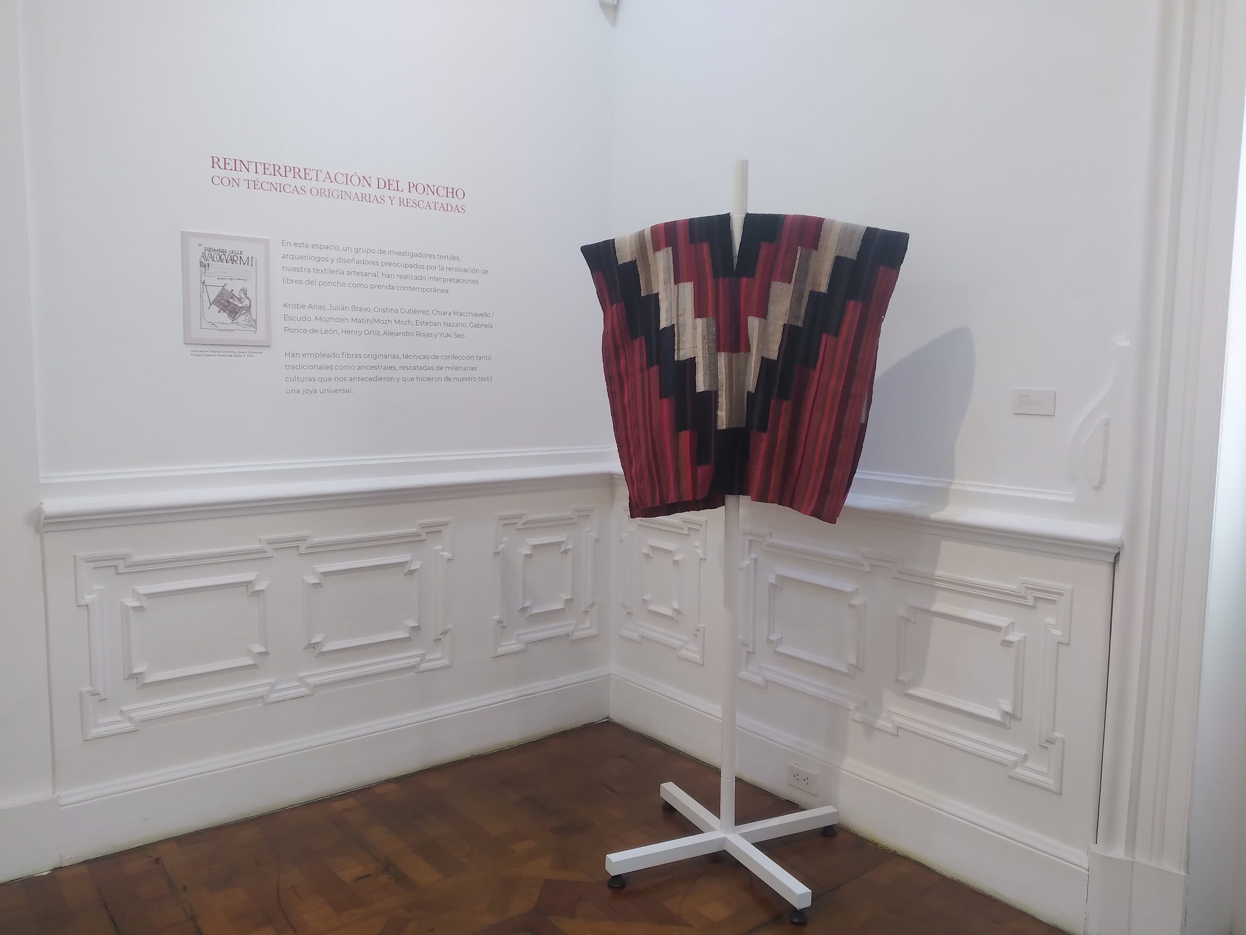 Como un homenaje al Bicentenario de la República, la recién creada Asociación Cultural Textil del Perú presenta esta interesante exposición donde se exhiben ponchos tradicionales y contemporáneos, con propuestas innovadoras, creados por diseñadores, arqueólogos, investigadores y especialistas en el rescate de técnicas ancestrales y fibras originarias. Esta asociación tiene como objetivo difundir, investigar y dar a conocer la tradición textil del país.