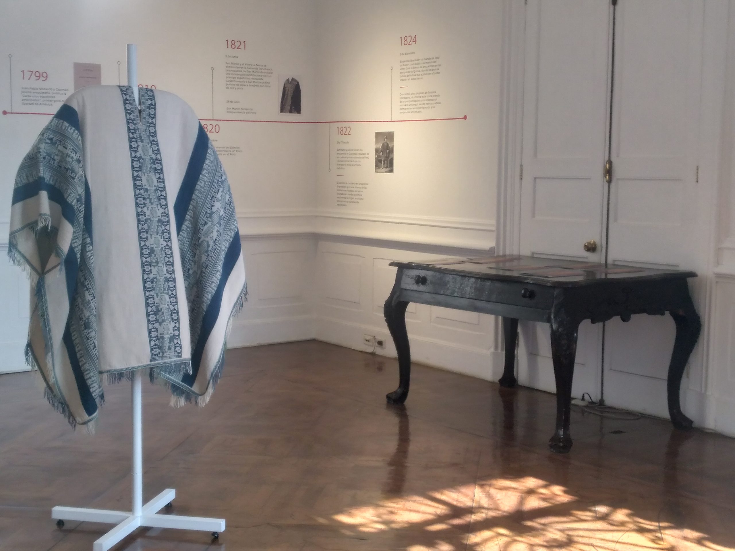 De esta manera, en la gesta independentista, y especialmente en el cruce de los Andes del ejército del libertador San Martín, el poncho se convirtió en una prenda de prestigio y poder, ofrecida como agradecimiento por la población a los libertadores. Dentro de los ponchos antiguos que se exhiben se encuentra una réplica del poncho del general San Martín y un poncho atribuido al libertador Simón Bolívar (Ca. 1825). Asimismo, se puede apreciar el famoso cuadro de Daniel Hernández «La capitulación de Ayacucho» (1924), donde se advierte al mariscal Guillermo Miller con un poncho de vicuña, prenda que lo caracterizó a lo largo de la campaña libertadora.