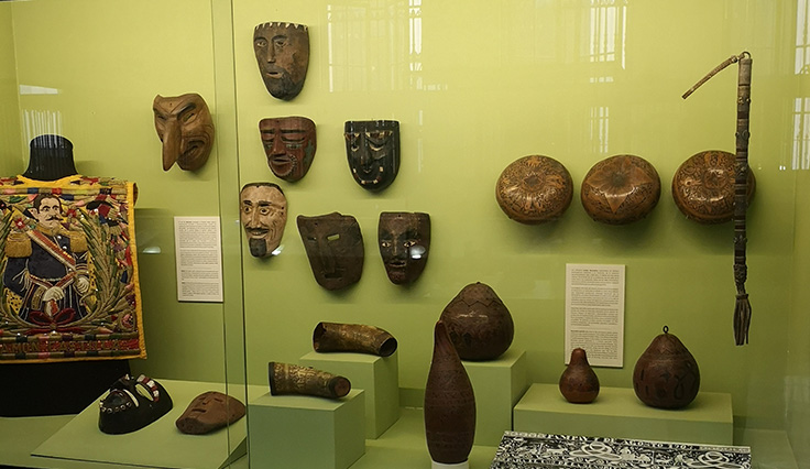 En la Sala de Arte Popular se puede conocer y disfrutar la colección Macera-Carnero formada por el doctor Pablo Macera. Se pueden apreciar, entre otros objetos, máscaras festivas, mates burilados, retablos modelados, tejidos y bordados de diversas regiones del país, que nos narran historias de nuestra tierra y nos acercan a las tradiciones milenarias de nuestros antepasados.