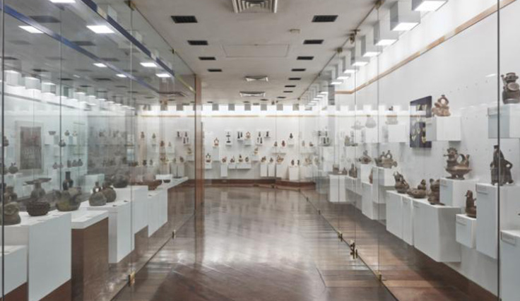 La Sala de Arqueología presenta una muestra representativa del arte de las culturas originarias del antiguo Perú. Las vasijas ceremoniales de cerámica, las tallas de piedra y madera, y los antiguos tejidos muestran la maestría y calidad alcanzada por los artistas del pasado.