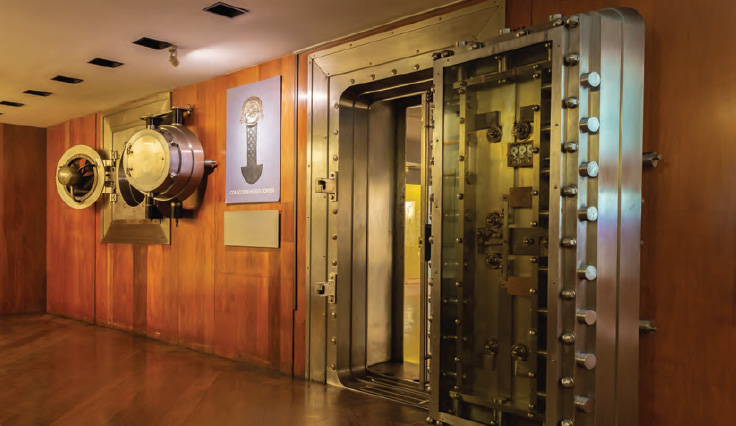 La metalurgia precolombina se muestra en su esplendor en la Sala de Oro Hugo Cohen, donde se exhiben piezas donadas al BCRP por el doctor Roberto Letts Colmenares en el año 2006. Esta colección está compuesta por objetos rituales y adornos corporales hechos de oro, plata, cobre y diversas aleaciones.