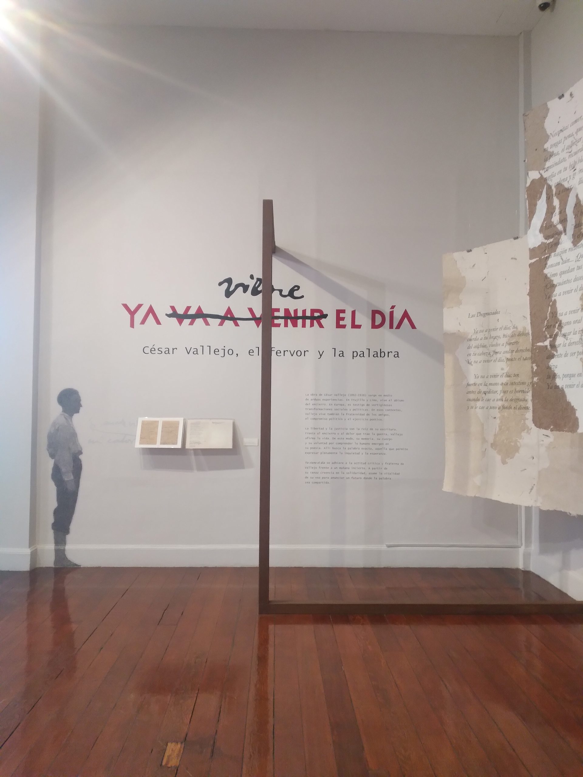Con esta muestra, la Casa de la Literatura Peruana vuelve a presentar una propuesta museográfica dirigida a las escuelas y al público en general. Se precisa que el nombre de la exposición se inspira en el poema «Los desgraciados», incluido en «Poemas humanos» de 1939. En la última estrofa de la versión manuscrita de esta obra, el poeta tacha la frase «Ya va a venir el día» y la cambia por «Ya viene el día». La curadora señala que: «de ese modo, Vallejo reemplaza la posibilidad por la afirmación total de cambio. Este gesto pequeño y potente es una muestra de su voluntad, de la esperanza y empatía que marcaron su vida y obra. Con ella afronta tiempos de crisis».